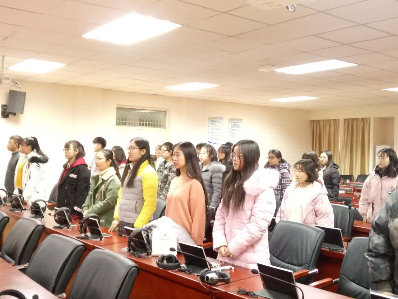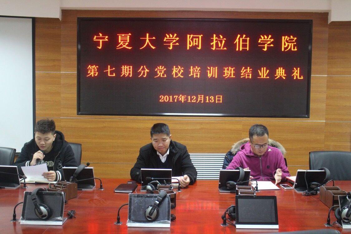 在学院报告厅举行分党校第七期入党积极分子党课培训班结业典礼,学院党总支副书记赵永军、学生工作办公室老师金宁洋和全体学员参加。