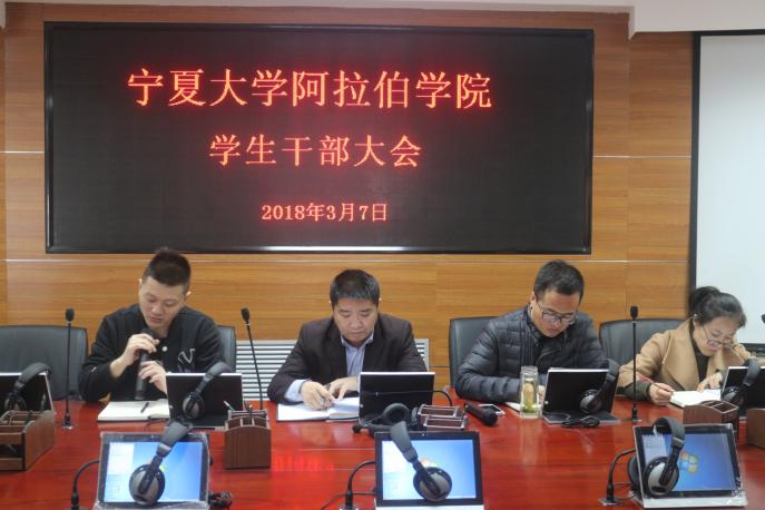 接着,金宁洋老师对团学工作做了安排,对本学期的晨读、宿舍风采大赛、欢送毕业生晚会、“语时俱进”杯阿语时文朗诵等重点工作做出了具体要求。