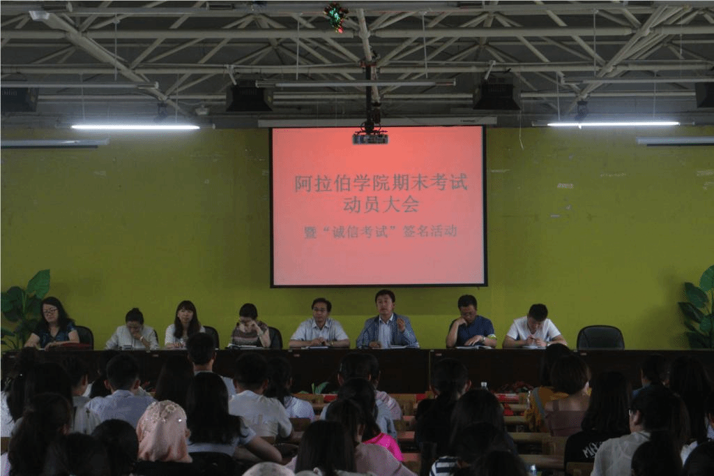 考试违规处理办法》。白楠副院长就学院期末考务提出了几点要求:一,学生应端正态度,制定学习方案,积极备考。二,监考教师要严格履行考试相关职责,增强责任感。三,严肃考风考纪,文明考风,诚信考纪。接着,金忠杰常务副院长针对学生诚信考试,做好学生警示教育工作,结合以往期末考试期间的学生典型事例对诚信做了详细说明,并要求学生调整心态,充分做好考前复习,互帮互学,加强班级学风建设,建立科学合理的考试方法,让学生在思想上高度重视期末考试,树立诚实守信的观念,确保教学工作的顺利进行。最后,学生依次上台,在诚信考试横幅上签字。
