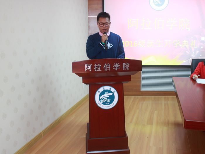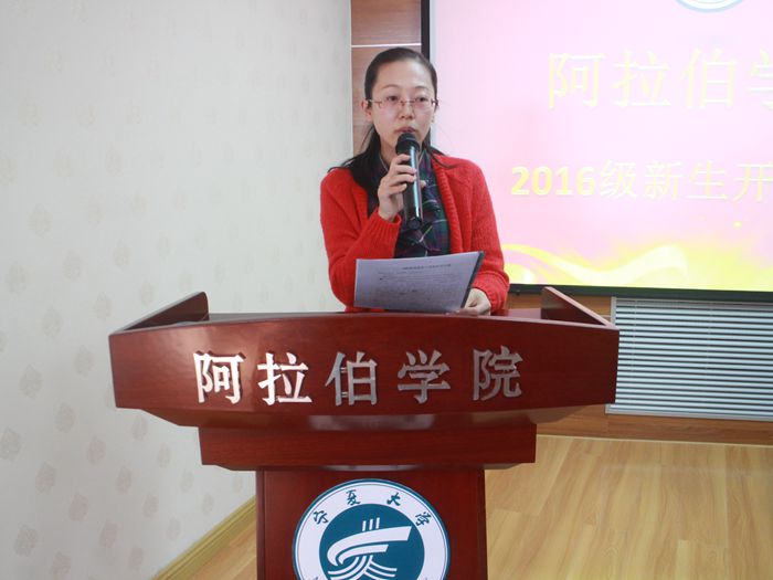 接下来,白楠副院长进行了教学情况介绍。对同学们提出了发展健康+、互联网+、人文素养+、科学素养等当代新思维品质的要求,提升了同学们对阿语学习的认知。