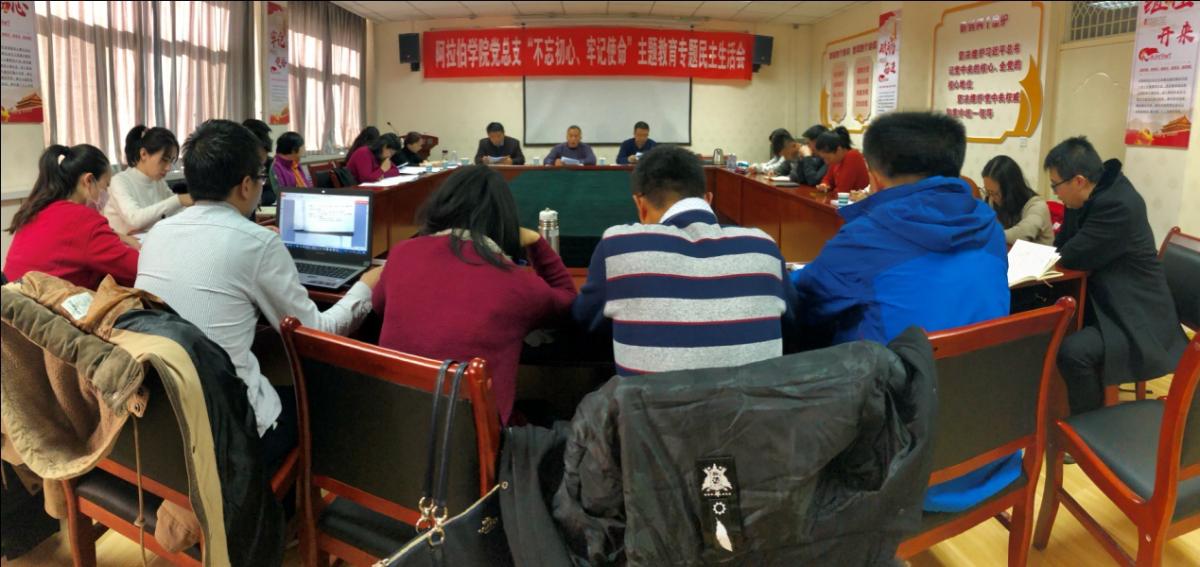 首先,张前进同志通报了2018年度学院班子民主生活会整改落实情况和2019年民主生活会准备情况,并代表学院班子从主题教育开展以来的收获、按照“四个对照、四个找一找”的要求查找出班子存在的主要问题、存在问题的根源和整改措施等四个方面进行了深刻检视剖析,并带头进行了个人对照剖析。