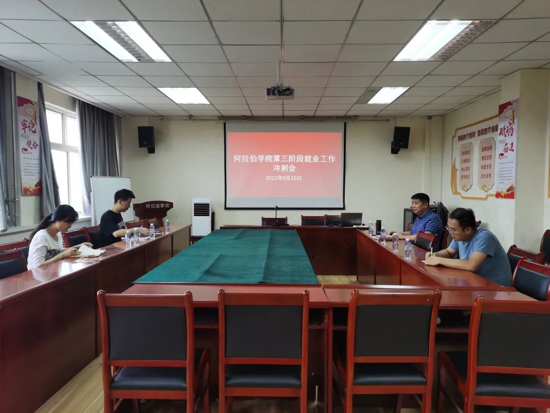 (中国阿拉伯国家研究院)在文萃校区知行楼814召开“2022届未就业毕业生第三阶段就业工作冲刺会”。学院党政领导、工会主席、系主任、2022届毕业生精准帮扶联系教师参加会议,部分教师通过腾讯会议形式参加会议。会议由学院党总支书记李海燕主持。