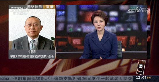 学术副校长、中国阿拉伯国家研究院执行院长,中国中东学会副会长、中国人民外交学会理事牛新春教授应邀请参加2024年《国家风险分析报告》发布会暨国家风险管理论坛,作了关于国际形势的发言;应邀参加了以“推动绿色发展建设共同家园”为主题的“第十一届中国—中亚合作论坛”,并接受了央视十三频道《新闻直播间》、国际广播电台《环球资讯》等栏目的采访和访谈,就当前局势及趋势进行了分析和解读。