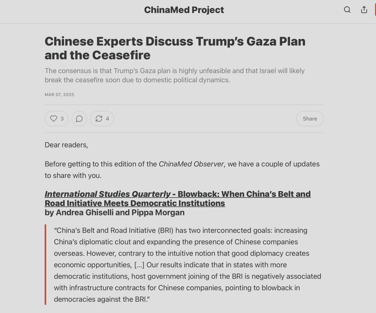 六、3月7日ChinaMed Project网站《Chinese Experts Discuss Trump's Gaza Plan and the Ceasefire》一文引用牛校长观点