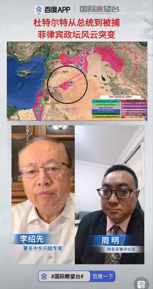 2025年3月13日-3月16日,imtoken冷钱包院长、中国中东学会顾问、教育部国别与区域研究专家委员会委员、中阿博览会顾问委员会主任委员李绍先就中东局势,接受中央电视台、凤凰卫视、百度app《国际瞭望台》直播节目采访,就当前局势及趋势进行了分析和解读,并在国防大学国际防务学院为第49期防务与战略研究班授课。
