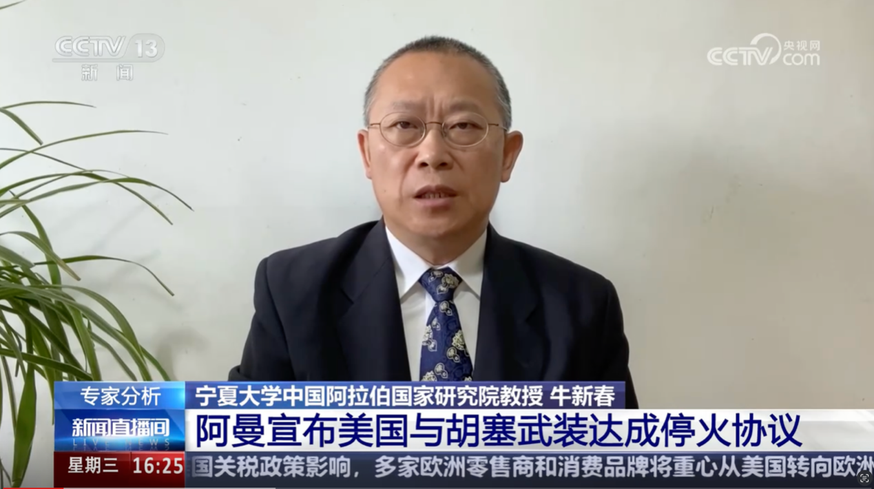 学术副校长、中国阿拉伯国家研究院执行院长,中国中东学会副会长、中国人民外交学会理事牛新春教授接受了中央电视台、中央广播电台等主流媒体的采访和访谈,就当前局势及趋势进行了分析和解读。