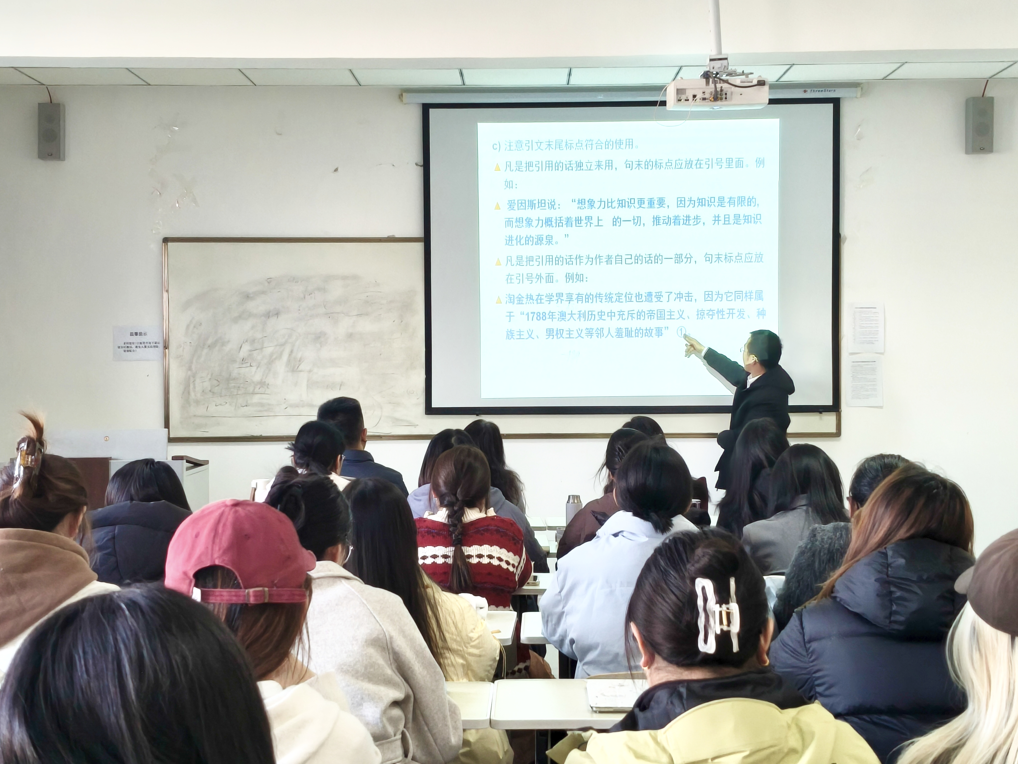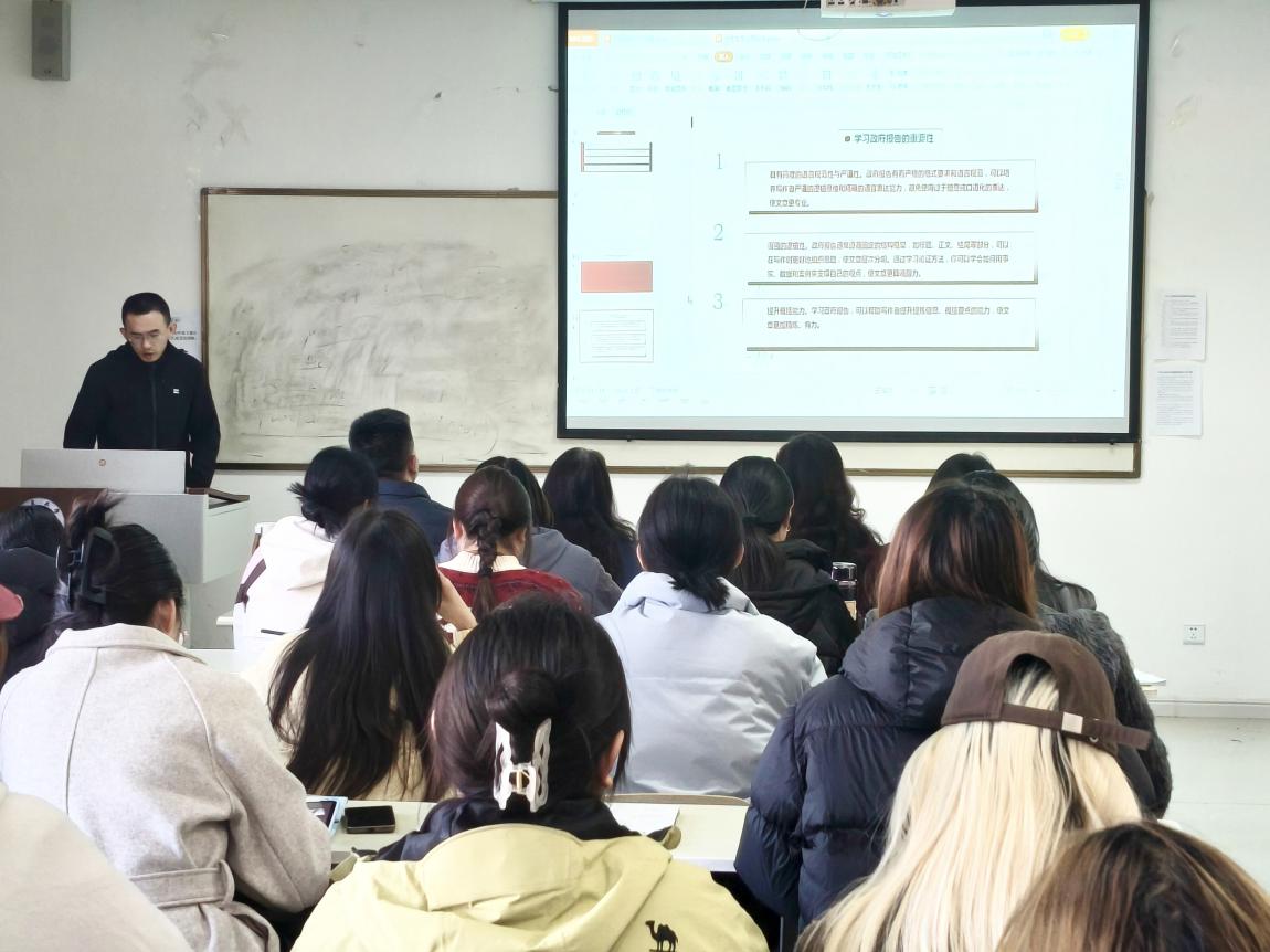 宋保军老师与武琼老师聚焦毕业论文撰写核心要点展开了深入指导。针对毕业生普遍存在的论文写作困惑,两位老师从资料检索技巧入手,详细讲解了学术文献、网络资源及政府报告的获取与运用方法,强调学习政府报告对把握研究方向、提升论文深度的重要性。在逻辑方法与创新层面,他们结合专业案例剖析论文逻辑构建的关键路径,引导学生突破思维定式,挖掘研究的创新点。同时,围绕语言表达规范性及文献材料合理运用等方面,通过现场演示的方式,让学生直观了解论文撰写的实用技巧,有效化解了大家在写作中的各类难题。
