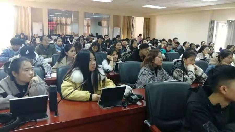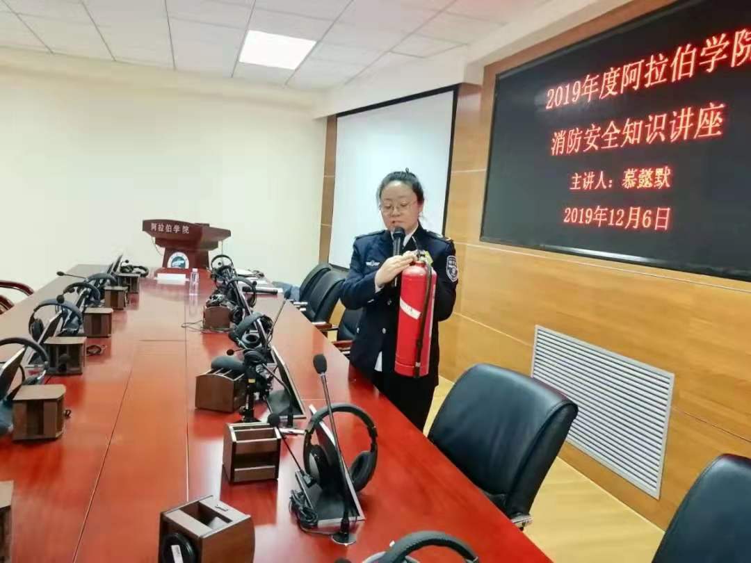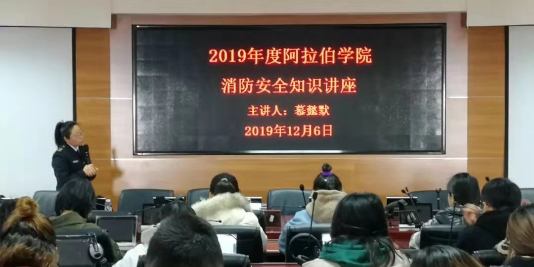 保卫处消防科慕懿默老师主讲,讲座由学办金宁洋老师主持,18级团学干部、班委与19级全体学生参加。