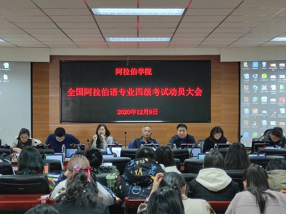 召开全国阿拉伯语专业四级考试动员大会。学院党总支书记张前进、副书记赵永军、副院长白楠,2018级和2019级专业课教师及全体学生参加。会议由白楠副院长主持。