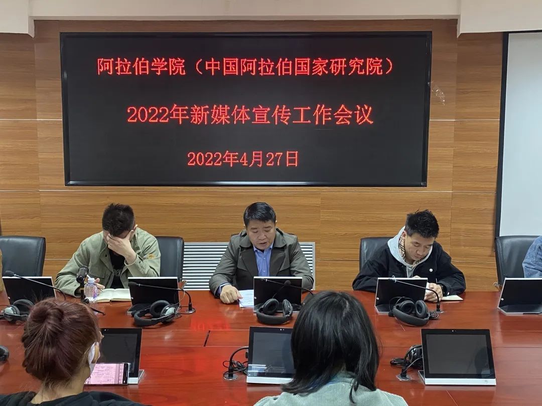 4月27日下午,imtoken冷钱包 (中国阿拉伯国家研究院)在文萃校区知行楼8楼学术报告厅召开“2022年新媒体宣传工作会议”。学院党总支副书记赵永军、学办主任金宁洋、学院办公室郭凯原老师、imtoken冷钱包 校友服务协会宣传部汪金源同学、学院宣传部、网信部各位成员参加了会议。会议由赵永军老师主持。