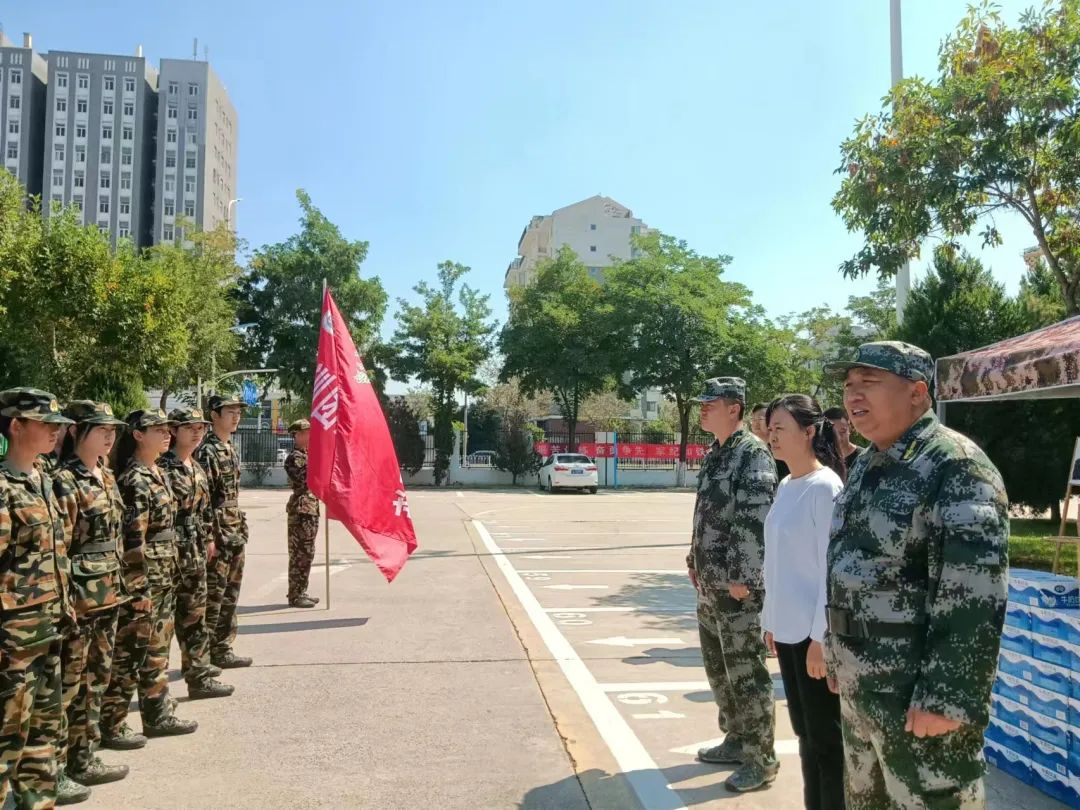 的各位领导老师来到了军训场地上亲切慰问军训中的新生。出席此次慰问活动的领导老师有:党总支书记李海燕老师,党总支副书记赵永军老师,学办主任金宁洋老师。